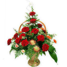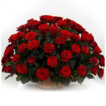 Корзина из роз, орхидей и декоративной зелени, потрясающий воображение подарок.