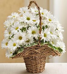 Корзина из кустовых хризантем в виде ромашек. Небольшая, но очаровательная.