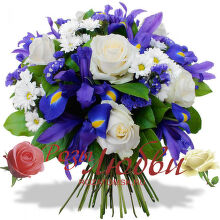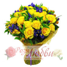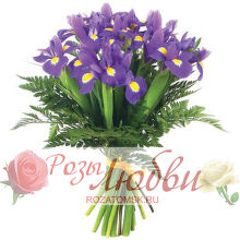 №78. Букет из 17 ирисов и папоротника. Красиво связанных яркой широкой лентой.
