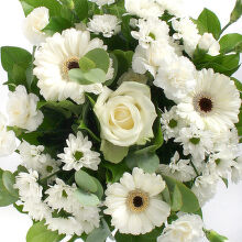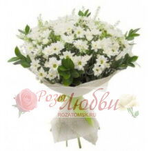 №182 Букет из белой розы 5 шт. кустовых хризантем 4 шт. и гипсофила 2 шт.