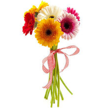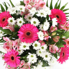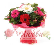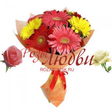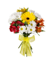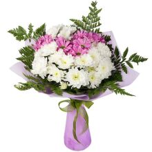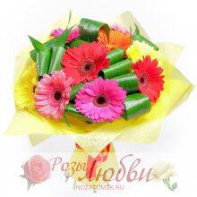 №153 Букет из 11 гербер 7 кустовых хризантем и 7 альстермерии с зеленью.