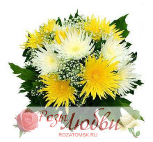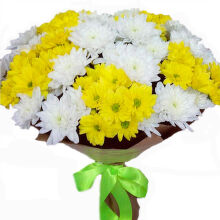 №184 Букет из 5 шт белых кустовых хризантем и 4 шт желтых кустовых хризантем