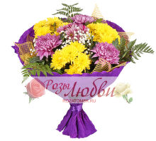 №76. Букет из кустовых хризантем 9 шт и кустовых или одиночных гвоздик. Яркий и солнечный букет.