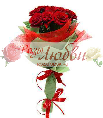 Красные розы (7 шт.), зелень и стильная упаковка.