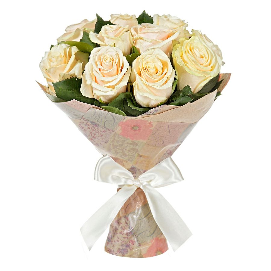 № 205 Букет из 15 роз кремового цвета с упаковкой. Всего