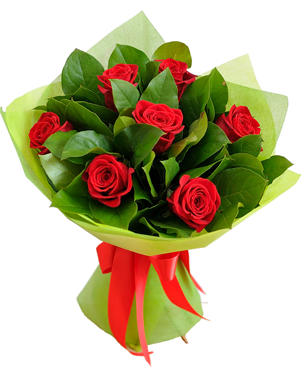 Букет из 7 роз с зеленью и стильной упаковкой — нежный подарок