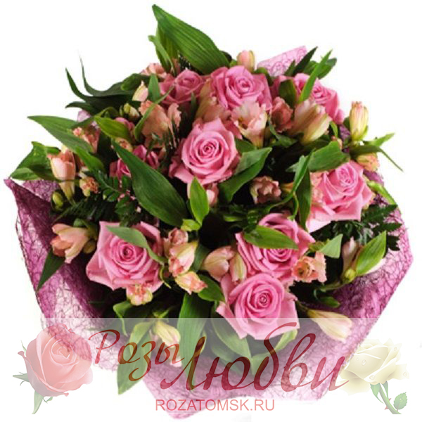 Нежный розовый букет из роз и альстромерий.