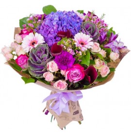 Букет Сборный из розы,герберы,гортензия,брассика,гвоздика, зелень,упаковка.